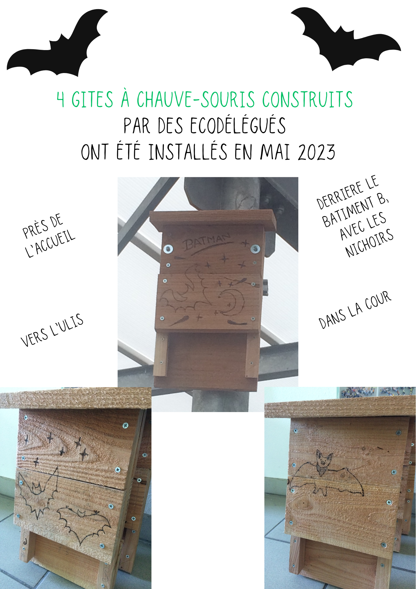 Ce fut aussi l'occasion de revoir tous les abris mis en place pour favoriser la biodiversité au collège : l'hôtel à insectes, les nichoirs et la mangeoire pour les oiseaux, les gites à chauve-souris et le gite à hérisson installé au printemps !