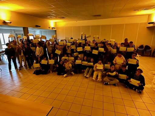 80 élèves de 3e se sont vus remettre leur attestation PSC après avoir suivi, en fin d'année scolaire 2024-2025 une formation, conduite par l'un des 4 enseignants formateurs du collège, que l'on remercie pour leur investissement.